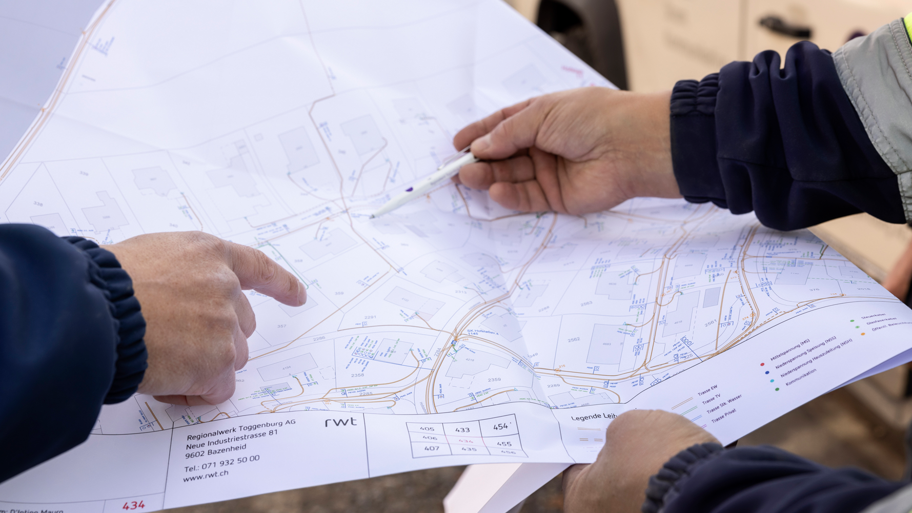 Ein umfassendes Planwerk gibt Auskunft über ober- und unterirdische Leitungen.